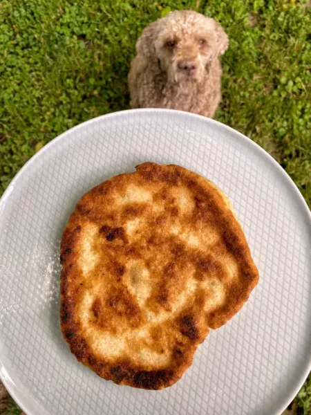 - Amikor összeállt 4 részre osztjuk és pici lisztezett felületen lángos alakúra lapogatjuk.